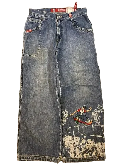 Sinksredesign how to style cargo pants women Streetwear Jeans Y2K Gothic Hip Hop Embroidery Retro Blue Baggy Jeans Pants Mens Womens Harajuku High Waist Wide Leg Trousers